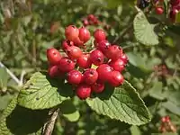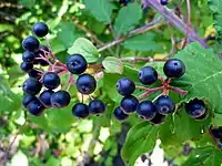 Найпоширеніші чагарники заповідника (зліва направо): 1) дерен звичайний; 2) ліщина звичайна; 3) бруслина європейська; 4) дерен-свидина; 5) гордовина. | ||||||||||