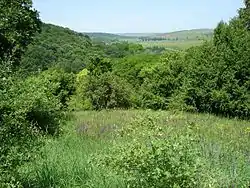 ![]() Краєвид заповідника Кодри: на передньому плані лани перехідної зони, на задньому — лісисті заповідні узвишшя. Краєвид заповідника Кодри: на передньому плані лани перехідної зони, на задньому — лісисті заповідні узвишшя. | |