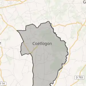 - Розташування муніципалітету Коетлогон на мапі Франції та сусідні муніципалітети