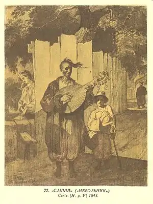 - Шевченко Т. Г. «Сліпий» («Невольник») // Повне зібрання творів в десяти томах / Відповідальний редактор Касіян В. І., Редактор тома Бутник-Сіверський Б. С. — Київ : Видавництво Академії наук УРСР, 1961. — Т. 7: Живопис, графіка 1830—1847. — Кн. 1.