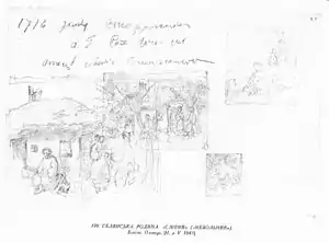 На пасіці. Кобзар з поводирем. Біля криниці, начерки