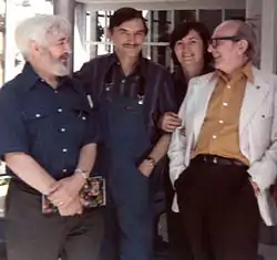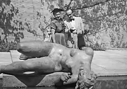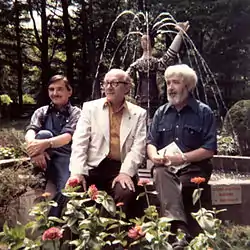 | Любослав Гуцалюк, Едвард Козак і Яків Гніздовський поруч скульптури Слави Ґеруляк на Союзівці | ||||