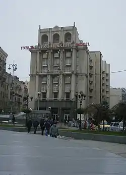 На двоповерховому «будинку Гудовського» в 1974 році було встановлено меморіальну дошку на честь Тараса Шевченка, який перебував 1859 року в цьому будинку як гість товариша по Петербурзькій академії мистецтв, відомого на той час київського фотографа Василя Івановича Гудовського. Під час реконструкції центральної площі Києва і будівництва готелю пам'ятну дошку було втрачено; у 2017 році на стіні готелю з боку Малої Житомирської вулиці відкрито бронзову меморіальну дошку з барельєфом Тараса Шевченка.