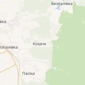 Село Козачка знаходиться біля витоків річки Вільшанка, нижче за течією на відстані 3 км розташоване селище Безпалівка, на відстані 2 км розташоване село Пасіки, за 2,5 км — село Безпалівка, за 4,5 км — село Таранівка. До села примикають великі лісові масиви, у тому числі урочище Водяне (дуб). За 3 км від села розташована залізнична станція Безпалівка.