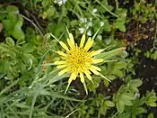 Дворічна трав'яниста рослина 40–80(100) см завдовжки. Стебло прямостійні, прості або розгалужені від нижньої або середньої третини, голі. Прикореневі й нижні стеблові листки від ланцетних до лінійних, 15–40 × 0.3–0.5 см. Квіткові голови поодинокі чи скупчені по кілька. Віночки жовті. Зовнішні сім'янки 2.2–3 см. Папуси брудно білі, 2.2–2.8 см. 2n = 12[2][3].