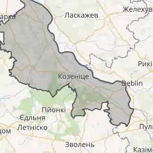 Повіт знаходиться у південній частині воєводства. Адміністративний центр — місто Козеніце. Станом на 1.01.2008 населення становить 61 433 осіб, площа 916,1 км².