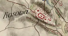 ![]() Козівський замок на мапі Фрідріха фон Міґа, XVIII ст.