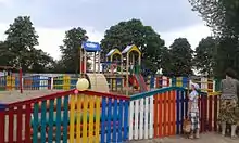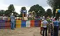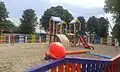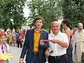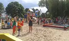Сільський голова О. Лазарєв та голова райдержадміністрації Р. А. Михайлич на відкритті дитячого майданчика
