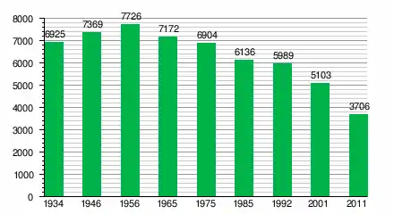 За даними перепису населення 2011 року у місті проживали 3706 осіб.