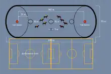 Як ворота використовуються тай-казани. Вони дуже зручні для чіткого фіксування гола. Крім цього, казани дуже зручні при грі в будь-яких умовах — на снігу, у весняну сльоту, на пухкому ґрунті тощо (коли робити розмітку землі замість казанів практично неможливо).