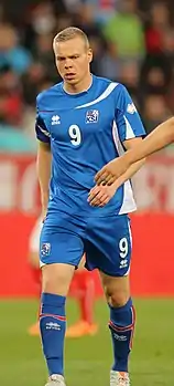 2010 року дебютував в офіційних матчах у складі національної збірної Ісландії. Наразі провів у формі головної команди країни 44 матчів, забивши 22 голів.