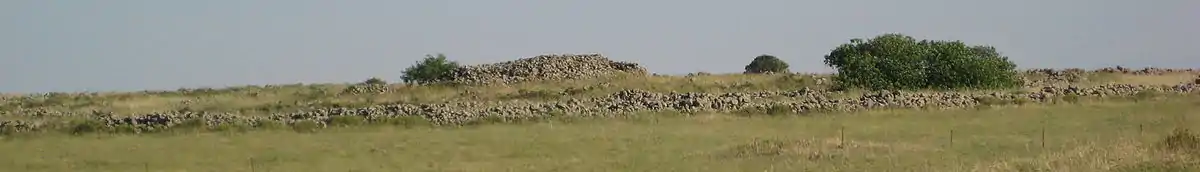 Центральний тумулус побудований з дрібних каменів і, як вважають, був побудований після завершення навколишніх стін.[10] Він має діаметр 20 м і висоту 4,6 м.[2] До нього підходять чотири головні кам'яні стіни. Перша стіна, у формі півкола, має 50 м в діаметрі і 1,5 м в ширину. Ця стіна з'єднана з наступною, майже повним колом діаметром 90 м. Третя стіна — це повне коло, 110 м в діаметрі і 2,6 м в ширину. Четверта і найдальша стіна є найбільшою: 150 м в діаметрі і 3,2 м в ширину.