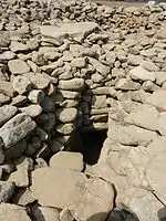- Дахма. Археолог Рамі Арав припускає, що пам'ятка використовувалася подібно до дахм зороастрійців, куди клали тіла помелих, щоб птахи поживилися плоттю.[8]