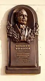 На фасаді будинку НТШ на вул. Винниченка, 24 у Львові встановлено меморіальну таблицю Філарету Колессі.