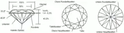 Огранка діаманта. Колетта простежується на крайньому лівому та правому рисунку.