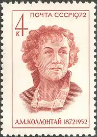 Олекса́ндра Миха́йлівна Коллонтай (рос. Коллонтай Александра Михайловна; дівоче прізвище — Домонтович; 19 (31) березня 1872, Санкт-Петербург, Російська імперія — 9 березня 1952, Москва, РРФСР) — учасниця революційного руху у Російській імперії, політична діячка РРФСР та СРСР, перша у світі жінка-посол, нарком, перша радянська жінка-дипломатка, активістка міжнародного феміністського руху, публіцистка, пропагандистка «вільного кохання».[5] «Валькірія революції» за висловом Льва Троцького.[5]