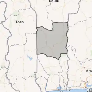Межує на заході з Того, на сході - з Нігерією, на півночі - з департаментами Боргу і Донга, на півдні - з департаментами Зу і Плато.