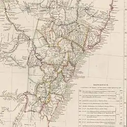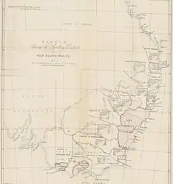 Мапа самочинно заселених районів (дистриктів) поза межами Дев'ятнадцяти округів, Новий Південний Уельс. 1844 рік.