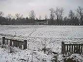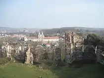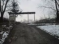 - Стадіон — над залишками вежі, справа від цвинтаря
