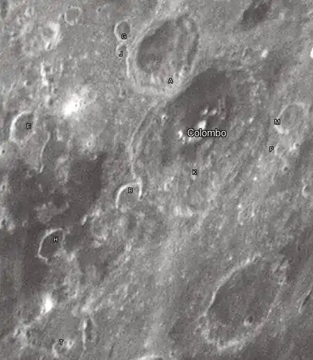 - Сателітний кратер Колумб A утворився в нектарському періоді[1].