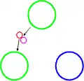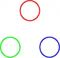 Баріон, що складається з 3 кварків (червоного, зеленого, синього), перед зміною кольорів