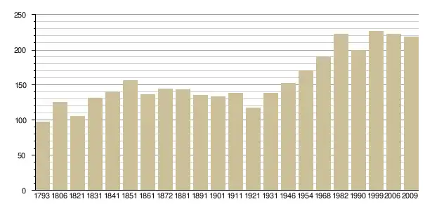 Динаміка населення (INSEE[5] і Cassini[6] ):