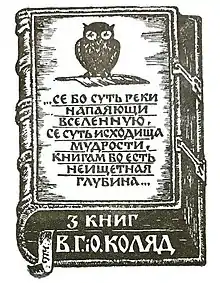 Вчений особисто замовив відомому художникові В. Є. Перевальському екслібрис до переданої музею збірки: на тлі колосся та дубового листя зображена стрічка з написом «Українське слово в друках 1798—1897 р.р. Із книг В., Г. і О. Коляд».