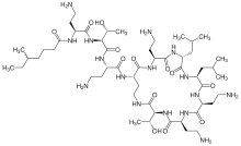 | N-(4-amino-1-(1-(4-amino-1-oxo-1-(3,12,23-tris(2-aminoethyl)- 20-(1-hydroxyethyl)-6,9-diisobutyl-2,5,8,11,14,19,22-heptaoxo- 1,4,7,10,13,18-hexaazacyclotricosan-15-ylamino)butan-2-ylamino)- 3-hydroxybutan-2-ylamino)-1-oxobutan-2-yl)-N,5-dimethylheptanamide | |