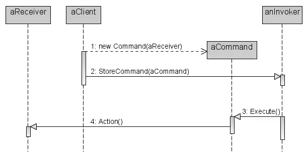 На діаграмі видно, як Command розриває зв'язок між викликачем та отримувачем (а також запитом, що повинен бути виконаний останнім).