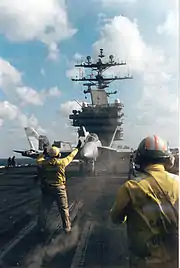 КДП потрібен і на авіаносних кораблях. Для забезпечення найбільш можливої корисної площі польотної палуби, КДП, ГКП і антени РЛС розміщуються на так званому «острові» (англ. island) — єдиній надпалубній надбудові. «Острів», як правило, розташовується по правому борту. Інше обладнання корабля розташовується з боків корпусу нижче рівня польотної палуби.