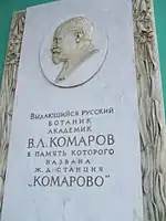 Барельєф акад. Комарова на будівлі вокзалу