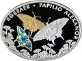 Казахська пам'ятна монета із зображенням метелика виду Papilio alexanor (реверс, срібло)