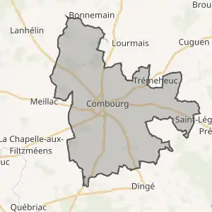 - Розташування муніципалітету Комбур на мапі Франції та сусідні муніципалітети