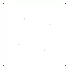 - Задача зі щасливим кінцем стверджує, що в будь-якій достатньо великій множині точок у загальному положенні на площині можна знайти точок, які є вершинами опуклого многокутника. Гіпотезу Ердеша — Секереша про найменше число точок, які обов'язково містять опуклий -кутник, на сьогодні не доведено. Дана задача є також завданням теорії Рамсея.