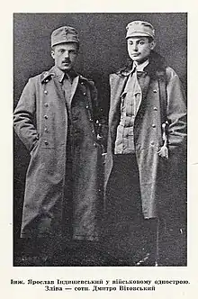 Крайовий комендант УВО Ярослав Індишевський (праворуч) та начальний командант УГА Дмитро Вітовський