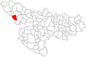 Комуна розташована на відстані[3] 458 км на північний захід від Бухареста, 48 км на захід від Тімішоари.