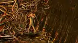Різниця між оригінальним кадром і наступний кадром, зсунута вправо на 2 пікселі. Зсув кадру компенсує панорамну зйомку камерою, тому існує велика область перекриття між двома кадрами. |