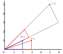 Як можна бачити, матриці, якими представляються комплексні числа є подібними до матриць повороту, тому множення комплексних чисел можна представити у геометричній формі як поворот в комплексній площині.