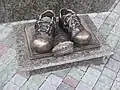 Пам'ятник людині-невидимці виглядає як дві туфлі і табличка з інформацією, кому він встановлений.