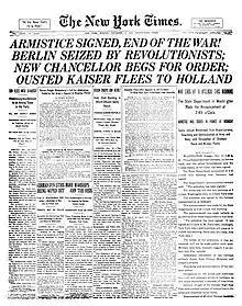 Поки в Берліні роздумували, в місті Кілі 3 листопада повстали військові моряки. Вони обурювалися спробою командування кинути їх в останній бій. Для захисту своїх інтересів моряки створили першу в Німеччині Раду. У Берліні на боротьбу піднялись робітники. В результаті Листопадової революції монархія була повалена. Імператор Вільгельм ІІ зрікся престолу. У Берліні сформували республіканський уряд, на який і покладалося завдання завершити війну.