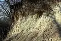 Унікальне відслонення зони Північно-Донецького насуву, одного з найбільших диз'юнктивів північної Донщини. Спостерігаються палеозой-мезозойські шари середньокам'яновугільного віку з великими кутами падіння та тріасові глини з кутами зворотного падіння, які знаходяться в тектонічному контакті з відкладеннями верхньокрейдяного і палеогенового віку.