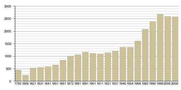 Динаміка населення (base Cassini de l'EHESS pour les nombres retenus jusque 1962[3], base Insee à partir de 1968 (population sans doubles comptes puis population municipale à partir de 2006)[4] · [5] ):