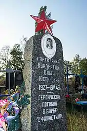Ольга Юстинівна Кондратюк (нар. 1927 — пом. 10 червня 1943) 16-річна партизанка загону імені М. Щорса на Житомирщині, яким керував А. Й Цендрівський