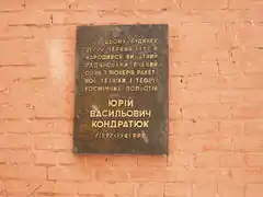 Меморіальна дошка на будинку, де народився Кондратюк у Полтаві