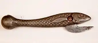 Консервний ніж-«метелик» (butterfly): працює за принципом «банкера», але споряджений вістрям для відкривання пивних бляшанок (church key)
