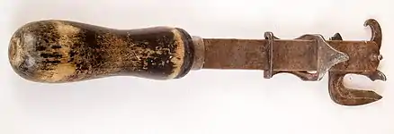 Консервний ніж важільного типу з дерев'яною ручкою. Італія, кінець XIX — початок XX