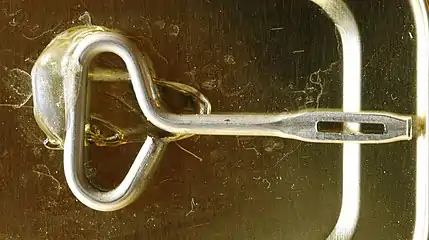 Консервний ніж у вигляді обертового ключа було запатентовано в 1866 році Дж. Остергаудтом (J. Osterhoudt)[8]. Він не є консервним ножем загального призначення: кріпиться точковим зварюванням чи паянням до кожної бляшанки і відламується від неї споживачем. Кожний тип консервів мав свій тип ключа: наприклад, м'ясні і рибні постачалися в прямокутних бляшанках, а кава, боби — у циліндричних. Відкривання здійснювається намотуванням на ключ тонкої смужки бляхи з верхньої частини ємності по насічених лініях[9][10][11].