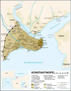 - Ця стаття розповідає про історичне місто з 330 по 1453 роки. Щоб переглянути статтю про місто-попередник у грецькі та ранні римські часи див. Візантій. Про Константинополь у добу Османської імперії та сучасне місто див. Стамбул.