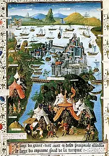 До кінця XIV сторіччя Константинополь опинився у кільці турецьких володінь. У 1394 році місто вперше було взято османським султаном (Баязидом I) в облогу. Констанинополь вдалося відстояти, але імперія вже переживала агонію. У 1411 році Муса Челебі вдруге спробував захопити візантійську столицю. Також невдалою була для османів облога 1422 року.