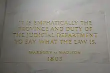 - Цитата з рішення: «Саме судова влада має право і зобов'язана сказати, що́ є закон» (англ. IT IS EMPHATICALLY THE PROVINCE AND DUTY OF THE JUDICIAL DEPARTMENT TO SAY WHAT THE LAW IS).
